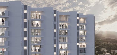 Multi-family building that houses 80 luxurious residential units, each of 120 m², situated on a large 10,000 m² lot. This project has EDGE certification, standing out for its innovative sustainable architecture strategies, focused on optimizing the use of water, energy and materials.