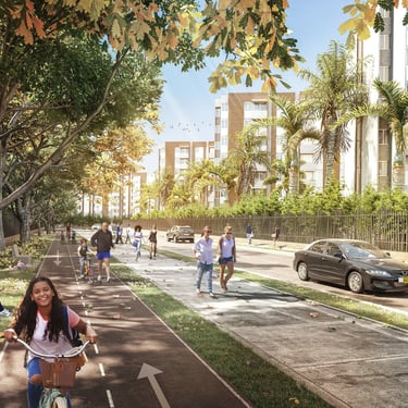 Urban project in the south of Santiago de Cali that includes 8,961 housing units and 198,000 m² of public space, with a focus on sustainability, green areas, community interaction and modern infrastructure for a more habitable future.